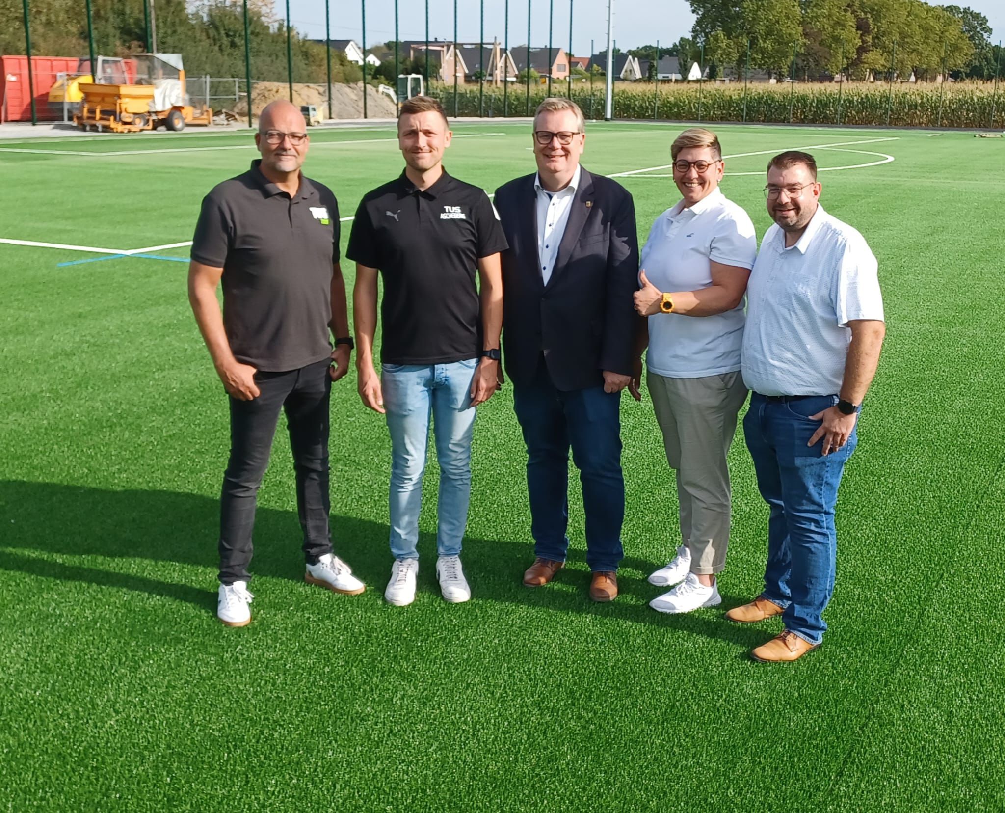 Auf der finalen Bau-Etappe werden nun noch das Fluchtlicht, die Umrandung, die Tore und ein Zaun installiert sowie letzte Pflasterarbeiten erledigt. „Der neue Kunstrasen ist mehr als nur ein Sportplatz – er ist vor allem ein Zeichen für den Zusammenhalt und die Zukunft unseres Vereins“, betonte Johannes Sandhowe als Teil des Geschäftsführenden Vorstands sowie als Projektleitung seitens des TuS.