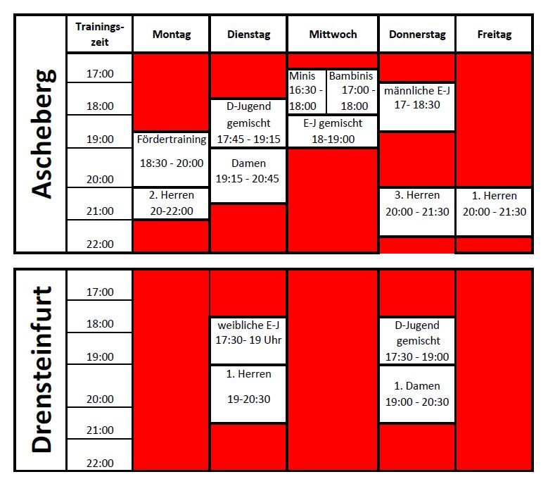 Hier die aktuellen Trainingszeiten für die Saison 2025/26