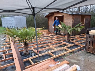 Bereits in der vergangenen Woche hatten zahlreiche Helferinnen und Helfer – trotz teilweise schlechter Wetterbedingungen – tatkräftig angepackt. Gemeinsam arbeiteten sie an der Hütte sowie an der Unterkonstruktion für das spätere Sonnendeck. Unter der Leitung von Patrick Richter sollen die Arbeiten auch in der kommenden Woche fortgesetzt werden. Ziel ist es, das Projekt innerhalb der nächsten zwei Wochen abzuschließen.